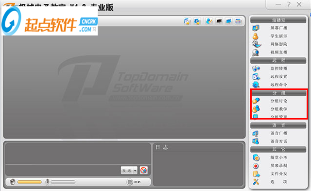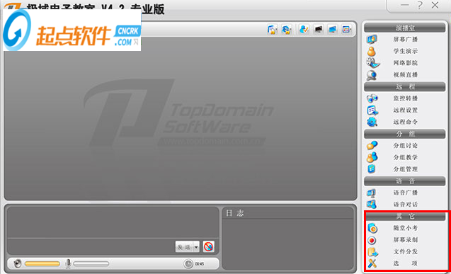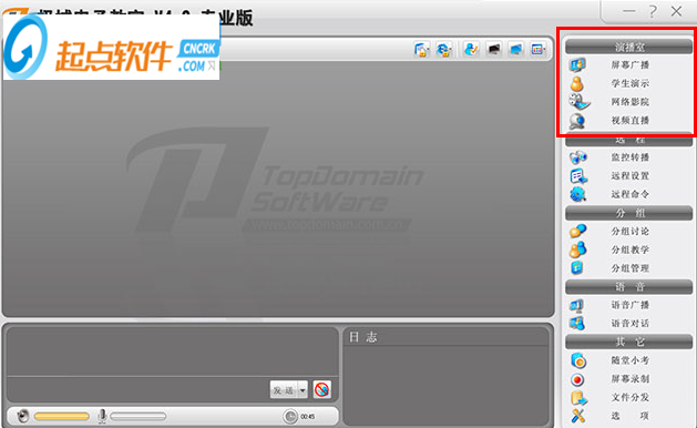 2、下图红框里面是演播室包括了屏幕广播、学生演示、网络影院、视频直播等;