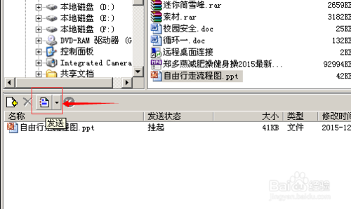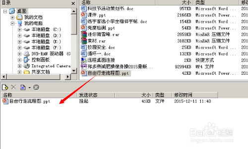 如下图所示,这里选择“自由行走流程图.ppt”,单击鼠标左键拖动,拉到下方窗口内松开鼠标。