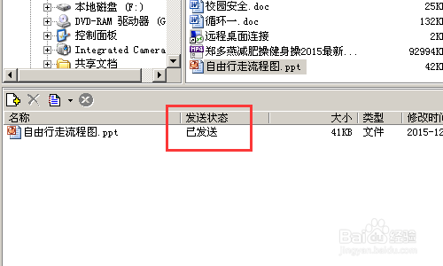 当文件发送成功之后,在如下图所示中显示,红色框内显示“已发送”。