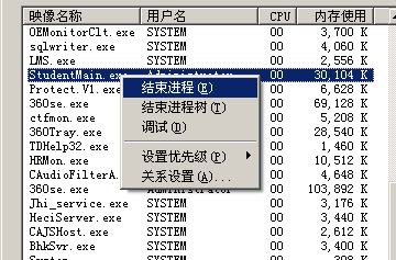 2、右键菜单栏,打开任务管理器,右键选择StudentMain.exe进程,选择结束进程。