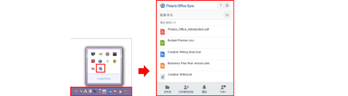 2、在计算机安装Polaris Office Sync并登录。把文档保存到指定的文件夹,即可在移动设备或Web网站查看同一文档。