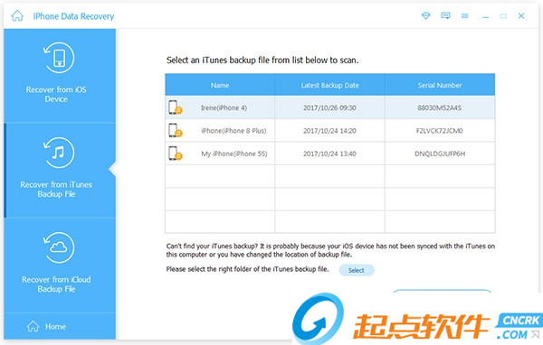 2、选择从iOS设备,iTunes或iCloud备份恢复数据,然后单击“开始扫描”以扫描iOS文件。