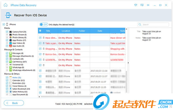 从iOS设备和iTunes/icloud备份中恢复已删除或丢失的数据恢复任何iOS数据,如照片,消息,联系人,便笺,通话记录,视频,日历,视频,应用程序等。