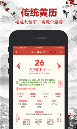 1、日历:黄历宜忌、节日节气、吉日查询、历史查询;