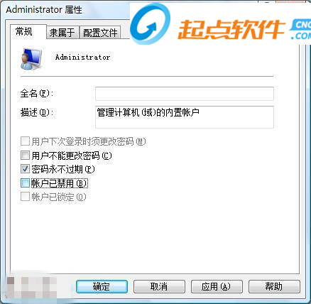 单击“开始”,再右击“计算机”,选择“管理”,之后再选择“计算机管理(本地)”→“系统工具”→“本地用户和组”→“用户”。右击Administrator,选择“属性”,在打开窗口中取消“帐户已停用”复选框。