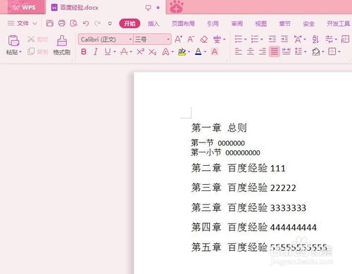 第四步:在各级标题前按回车键,空出一行用来放目录。