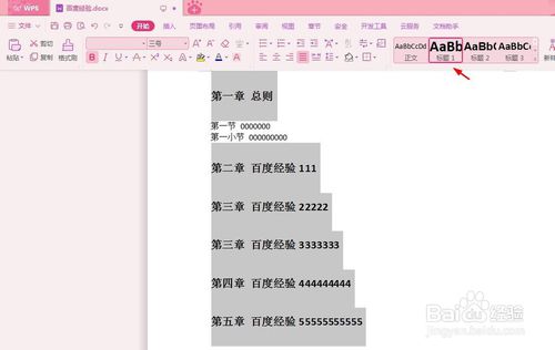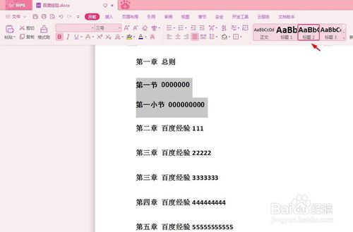 第三步:选中章节标题,分别设置为一级标题和二级标题。