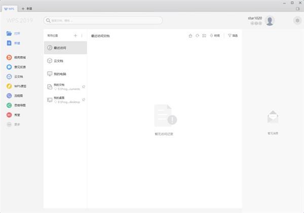 统一后的WPS Office 2019主界面采用了新的界面样式,新的主界面更具现代风格并且显得比较的简洁美观。