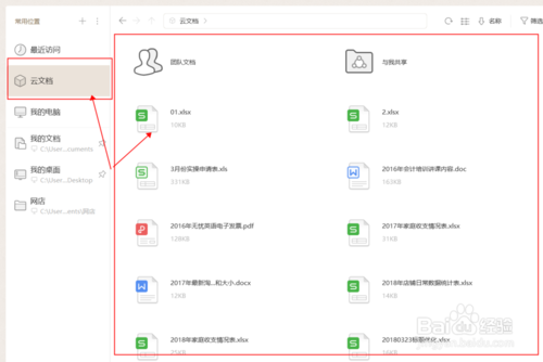 常用位置处可快速搜索云端和本地的办公文档,切换时只需单击鼠标轻点对应的图标,即可快速切换到对应的文档存储位置,如下图所示: