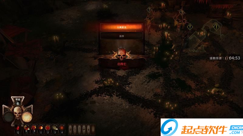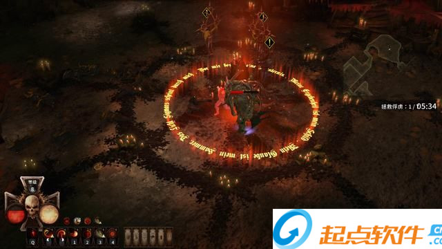 下方快捷键栏左侧第一个是血瓶,按Q使用后回血并进入冷却,这是你最重要的恢复手段,如果残血且血瓶还在冷却,那么你就需要找到技能中其他的恢复手段,否则就赶紧逃命。