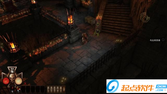 按Q喝药后楼梯边的士兵才会跟你交谈。