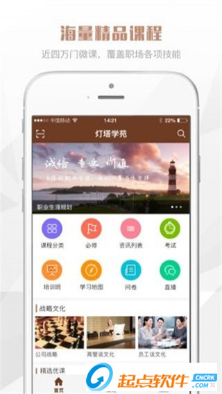 灯塔学苑是金融行业首款移动学习平台,已经建立了全面的课程体系,课程内容涉及商业银行内部各个条线,从中高层管理者的视野拓展到一线员工技能提升。