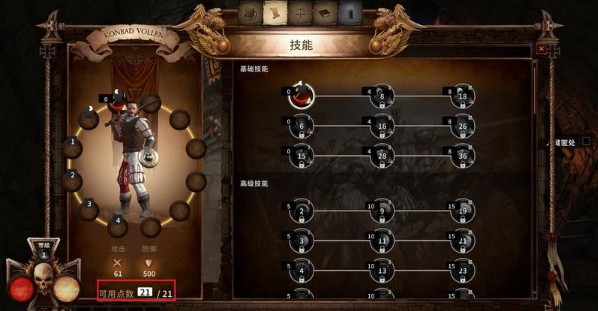 人物下方红框内的可用点数就是当前的人物技能点,通过升级、任务等方式都可以获得技能点。