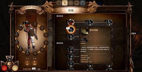 例如你有21点技能点,装备高级横扫需要8点技能点,那么就只剩下13点技能点用来装备其他技能。