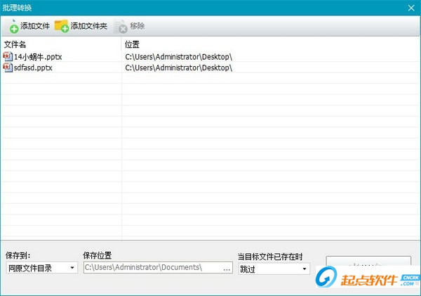 在这个批量转换窗口里,可以添加多个PPT文件,设置好保存位置等相关选项后,点击右下角“开始转换”按钮,即可以一键将所有的PPT文件转换为PDF文件了。