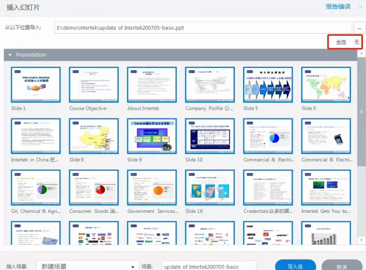2)选择你需要的页面,点击导入,即可完成PPT的导入。