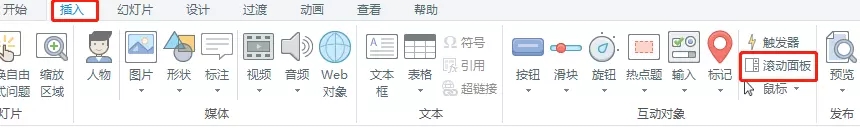 可以将文本或图片拖动到滚动面板中,内容较多时,可以通过拉动滚动条显示文字或图片。