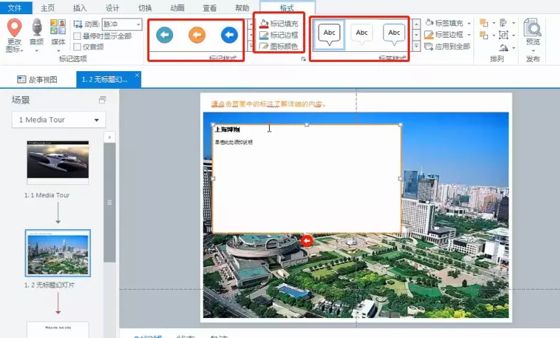 可以设计标记样式、填充颜色、边框、图标颜色、标签样式等;