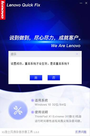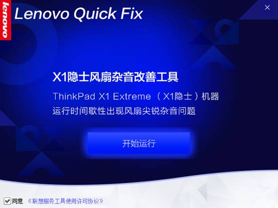 双击运行“X1隐士风扇杂音改善工具.exe”,可能出现的用户账户控制提示,请选择“是”,如图1所示: