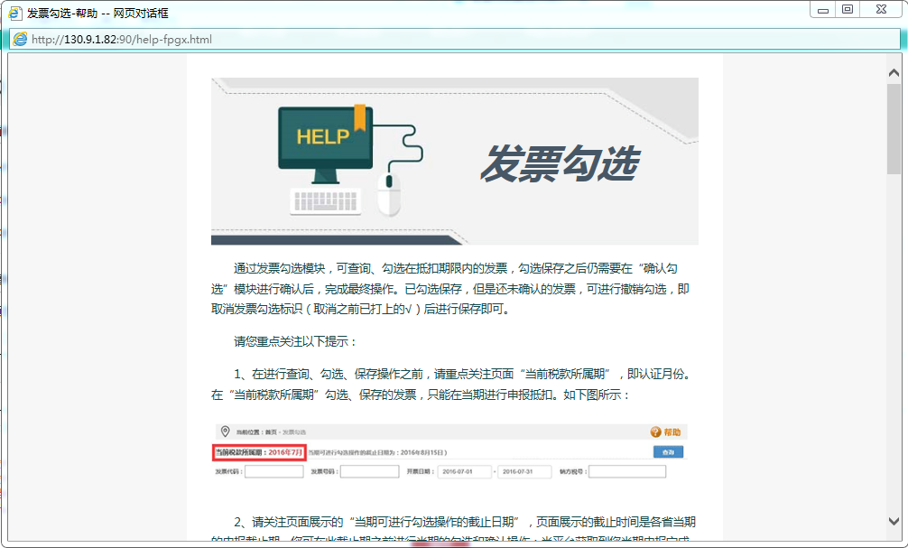 点击页面右上角的“帮助”按钮,可以查看“发票勾选”模块的关注要点信息,如下图所示: