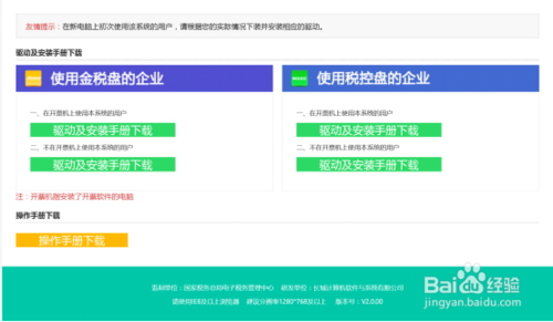 此时浏览器可以正确显示出增值税发票查询平台的登录页面,然后点击“请下载驱动程序和安全控件”的链接,纳税人可根据本企业的服务商及是否需要在开票机上使用本平台,选择下载相关的驱动程序文件,将driver_开头的.rar压缩包下载至本地硬盘。