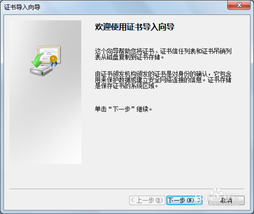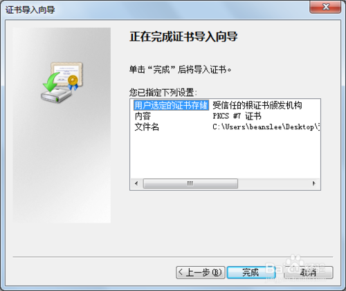 6、此时返回到证书导入向导页面,证书存储显示为“受信任的根证书颁发