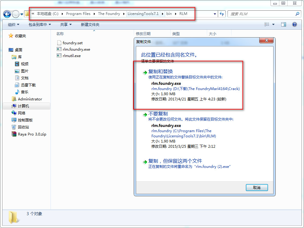 4、将crack文件夹下的rlm.foundry.exe复制到软件以下路径,如图所示,点击替换目标中的文件
