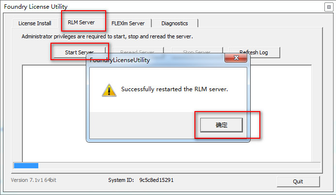 10、选择“RLM Server”项,点击“Start Sserver”载入