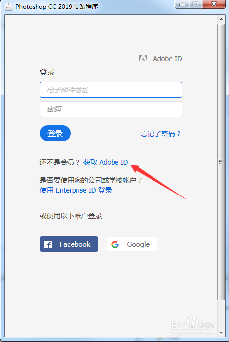 2、如果没有账号的,注册获取一个Adobe ID账号即可。