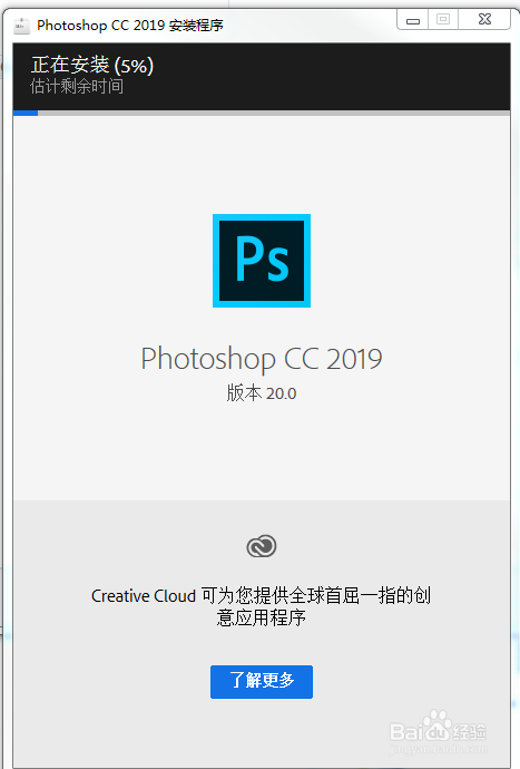 4、我们就会看到正在安装PS软件了,等待安装完成就可以
