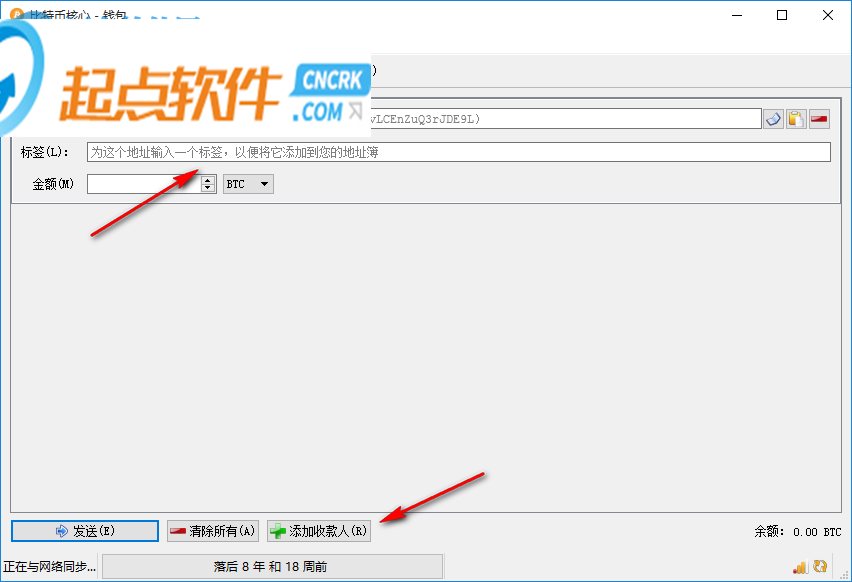 2、发送比特币:输入对方的地址、设置标签、在第三栏输入发送的比特币金额,点击发送即可