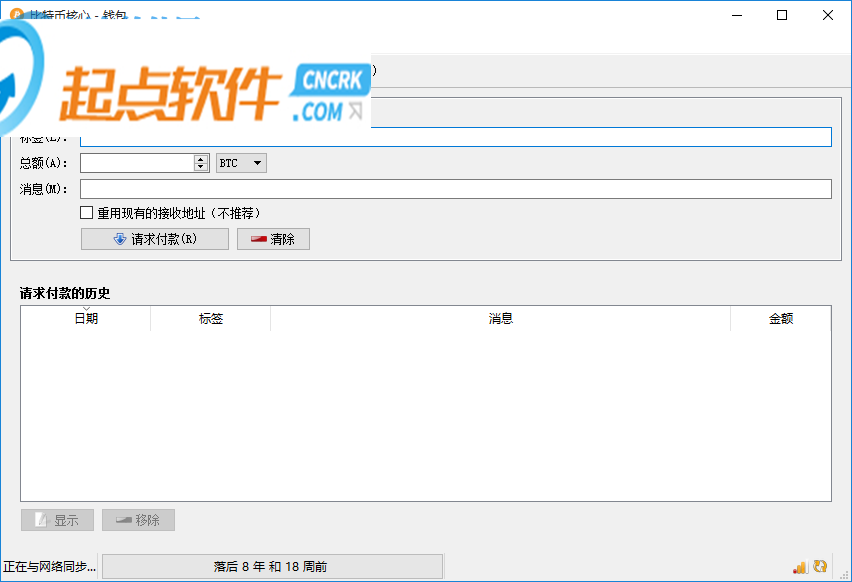 3、当有人给您发送比特币的时候,就可以在这里接手,支持重用现有的接收地址,支持查看请求付款历史