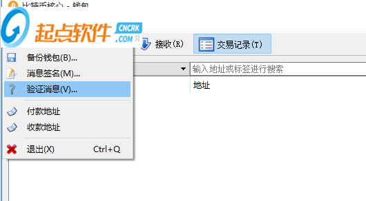 8、系统功能,可以选择验证消息、付款地址设置、消息签名、备份钱包
