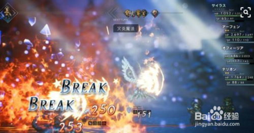 每个敌人弱点的左边都有一个盾牌图标,图标上面显示了数字。 这些数字表示每个敌人的破防点数(Breaking point)。每当你攻击一名敌人的弱点时,该敌人的破防点数就会下降1点。当破防点数降为0时,敌人就进入眩晕状态,暂时失去防御和攻击的能力。这意味着,在本回合接下来的时间与接下来的一整个回合中,这名敌人都将无法进行攻击,同时会受到更高伤害。
