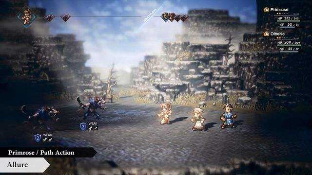 《八方旅人》借鉴了另一部作品《勇气默示录(Bravely Default)》中的“Brave”机制,游戏中名为“Boost”的机制可让角色在一回合内攻击数次,你也可把这一效果留到之后的回合中使用。最多可同时保留4个Boost效果,也就是战斗中角色名称下方的Boost点数“BP”,你还可选择为角色使用Boost的次数。 对武器攻击使用Boost效果可让角色多挥动武器一次,比如对装备斧子的角色使用了4重Boost,他就会用斧子额外攻击敌人4次。而对法术使用Boost只会增加法术强度而不是增加施法次数