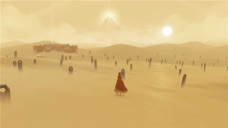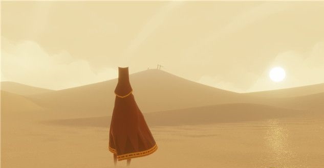 主角设定1、一位无名旅者自沙漠中苏醒,它拥有腾空飞行的能力,唯一的目标便是远方的山。在那座山上有一道光,直通天际。旅者认为那里是圣人的所在地,为了朝圣他踏上了未知的旅途。在游戏中玩家的最终目标就是控制角色到达旅程的终点——远方的山,到达终点后角色会走进一道耀眼的白色光芒中死亡然后再次复活回到起点,角色会在无限的复活中解锁不同的外观。