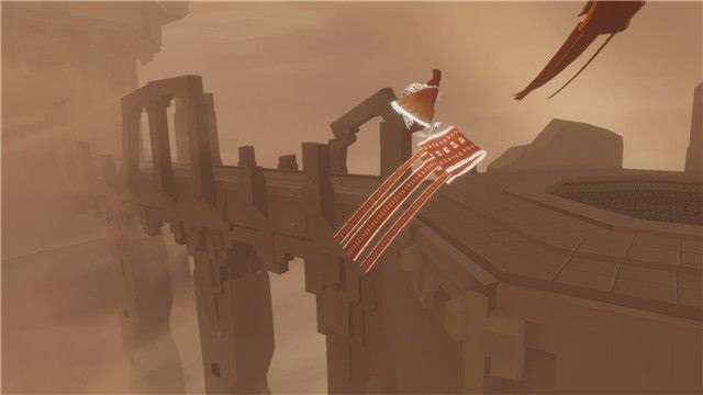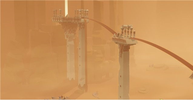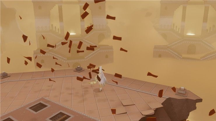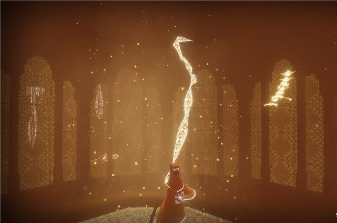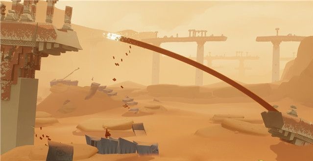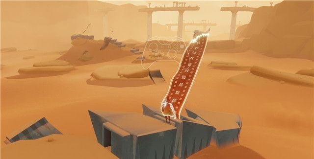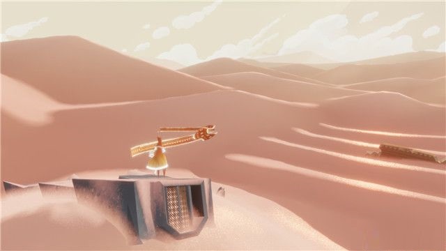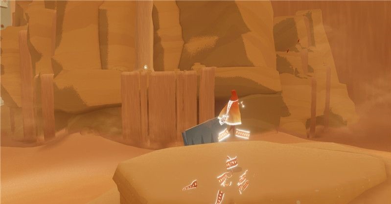 2、玩家在《风之旅人》中扮演一位徘徊在无尽沙海之中身披斗篷的无名旅者,戴着一条围巾,这是它的飞行秘密,角色可以跑、跳、打坐冥想,可以滑行,还可以短暂飞行,但无法攻击,在黄沙与类似墓碑的东西间前行,可以通过歌唱一般唤出符文咒语与身边的物件做出简单的互动,每一位玩家都有自己的专属符文,每个人都不同。角色歌唱时就会显示自己的符文。角色所有的动作都透着一股子的飘忽与轻灵,飞行尤其如此。
