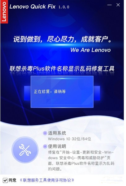 联想杀毒Plus软件名称显示乱码修复工具操作页
