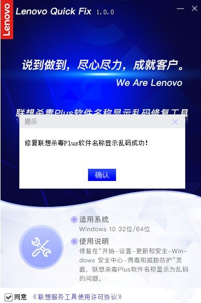 双击运行“联想杀毒Plus软件名称显示乱码修复工具”,可能出现的用户账户控制提示,请选择是