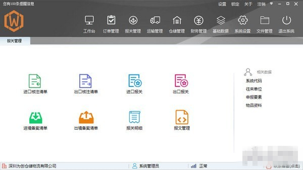 为创保税仓储管理系统是一款帮助用户对报关商品进行管理的电脑软件,我们可以通过这款软件来对报关产品生成账单,而且你还可以随时查看到这些产品的仓储情况,让你方便管理。