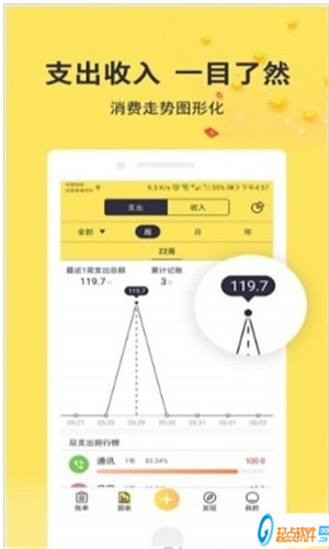 3秒钟记账:极简的操作流程,让你3秒钟即可完成一笔记账操作消费趋势:一目了然的图表,帮你快速分析消费情况