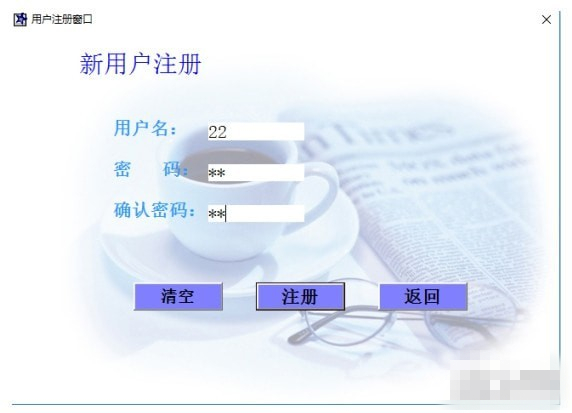 操作步骤:点击【新用户注册】 ,输入:【用户名】、【密码】、【确认密码】,点击【注册】。
