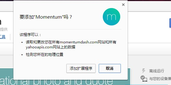 2.在谷歌浏览器中安装Momentum插件,并在Chrome的扩展器中启动功能,Momentum插件的下载地址可以在本文的下方找到。