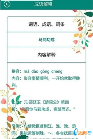 4、成语词典,囊括了我国98%以上的成语,不懂其含义时即可通过此功能查询成语的意思