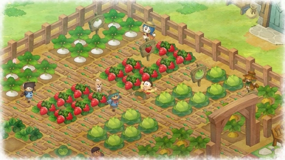 这款游戏基本上就是超受欢迎的哆啦A梦动画背景配合上牧场物语的游戏内容。游戏采用了一种温暖、怀旧的视觉风格,给人就像是在看一本画册,玩家在游戏中经营一个农场,还可以与村庄互动,并以主角大雄的视角探索周围的土地。当然,基本的游戏玩法围绕着种植农作物。这分五个阶段完成。