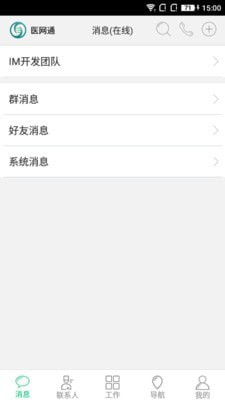 消息:提供一个全功能的IM沟通工具,并对不同的消息来源进行了归类,用户可根据归类。联系人:提供一个完整的医院内部通讯录、机构外好友以及自建群组等。好友可根据自己的偏好自定义分组。