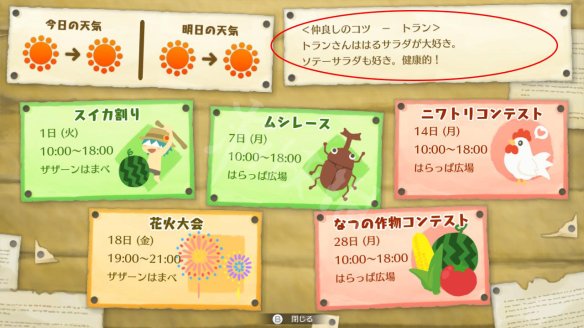 夏天捕虫大会所需的独角仙等可以在西边海滩的椰子树,牧场右上掉蜂蜜的大树下等处抓到。