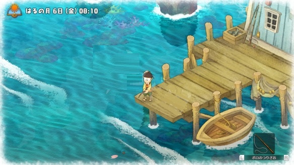 钓鱼的方法同样简单,将快捷道具切换到鱼竿后,靠近海边、河边的渔点,按A键即可垂钓。一般一个鱼点3-4次左右。在渔具点可购买鱼饵,将鱼饵撒到鱼点上就能钓到更高级的鱼,前期钱不够买不了太多鱼饵的话,可以通过S/L大法,没钓到高级鱼就读档。