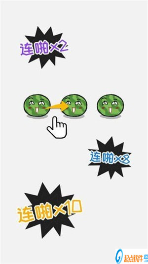 3、相同的西瓜图案进行合成,产生全新的西瓜图案,并让其爆炸