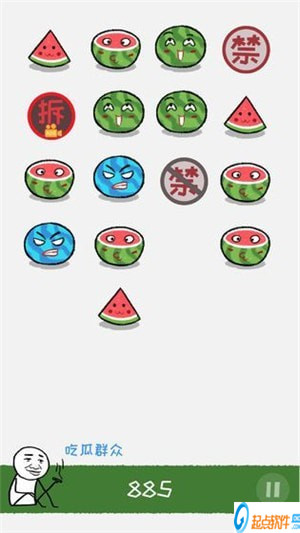 1、非常魔性的游戏玩法,在这个炎热的夏天里,当一个合格的吃瓜群众2、类似2048游戏玩法,合并出更高级的西瓜,让其得到连环爆炸的效果